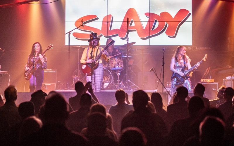 The world’s only all female tribute act to legendary 1970’s Glam Rock group Slade.Slady have been packing venues out since their debut at the beginning of 2019, and during the 2020 lockdown, they kept fans dancing with loads of online shows and videos.After seeing Slady at the Official Slade Convention in 2019, Slade drummer, Don Powell called them “Fantastic!” and in 2021 they headlined the convention.The SLADY set-list is ever changing and ever being added to… Songs performed include: Take Me Bak ‘Ome, Cum On Feel The Noize, Look Wot You Dun, Skweeze Me Pleeze Me, Coz I Luv You, Mama Weer All Crazee Now, The Whole World’s Going Crazee, The Bangin’ Man, Just Want A Little Bit, Don’t Blame Me, When The Lights Are Out, Everyday, Get Down And Get With It.Gobby Holder – Lead Vocals and guitar Davina Hill – Lead guitar & backing vocals Jem Lea – Bass & backing vocals Donna Powell – Drums“Fantastic! Brings back wonderful memories”“Best Slade tribute band in UK”“Spine Tingling”“Brilliant stuff. You’re doing Slade and Slade fans proud”